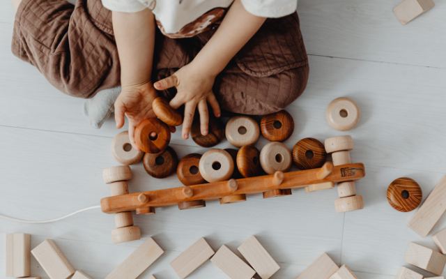 - 木製玩具:積み木、オブジェ、仕掛け玩具